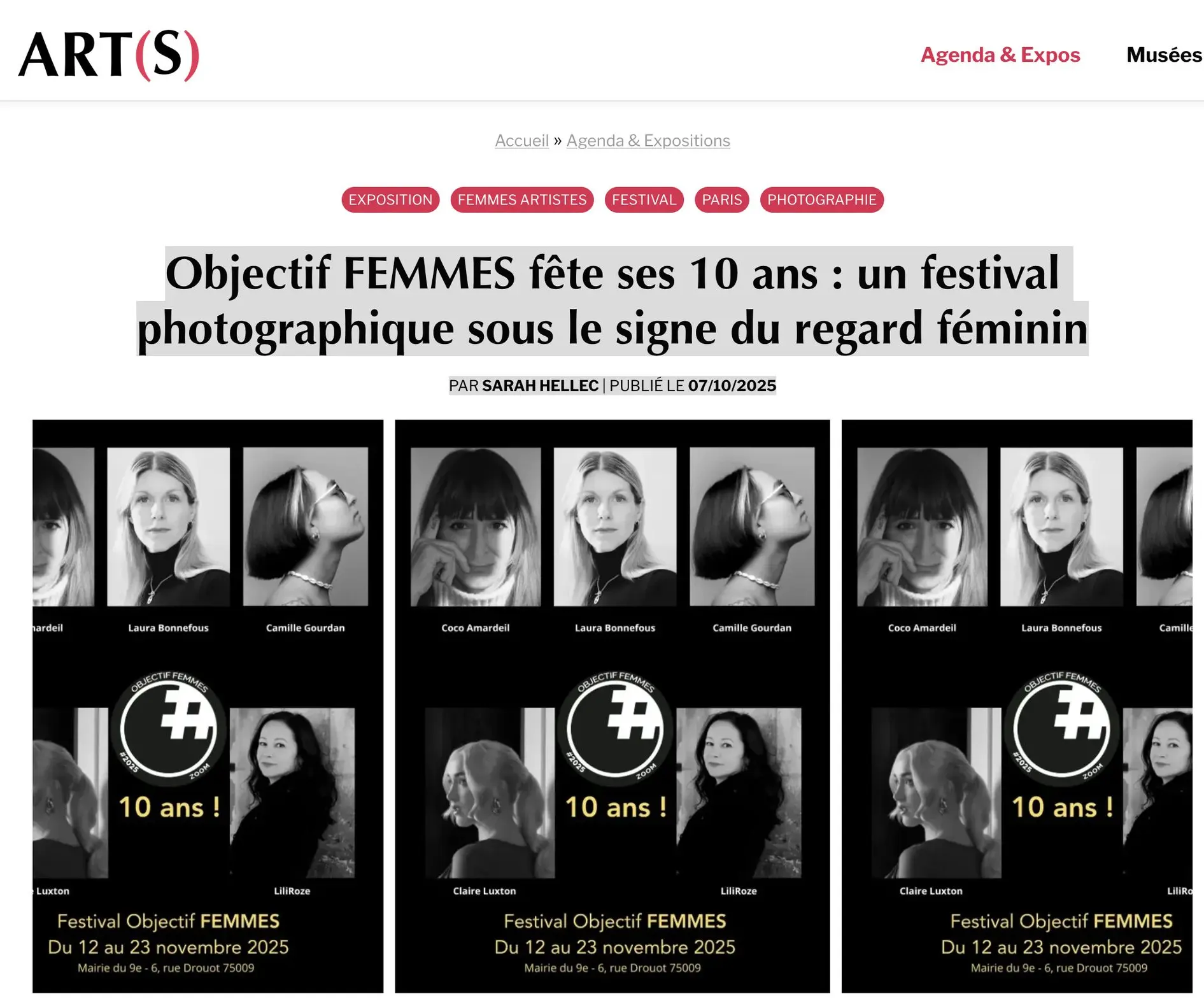 2ème chapitre : Les 10 ans du Festival Objectif FEMMES du 12 au 23 novembre avec les 5 photographes sélectionnées cette année,